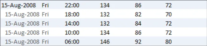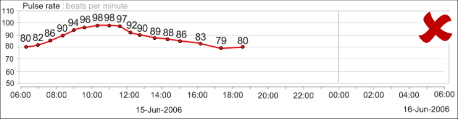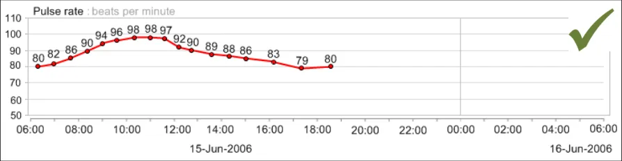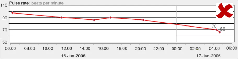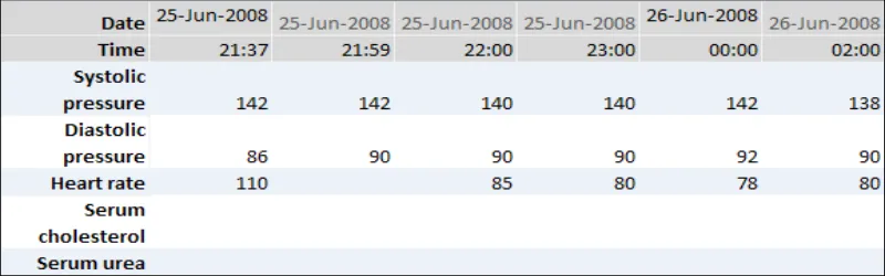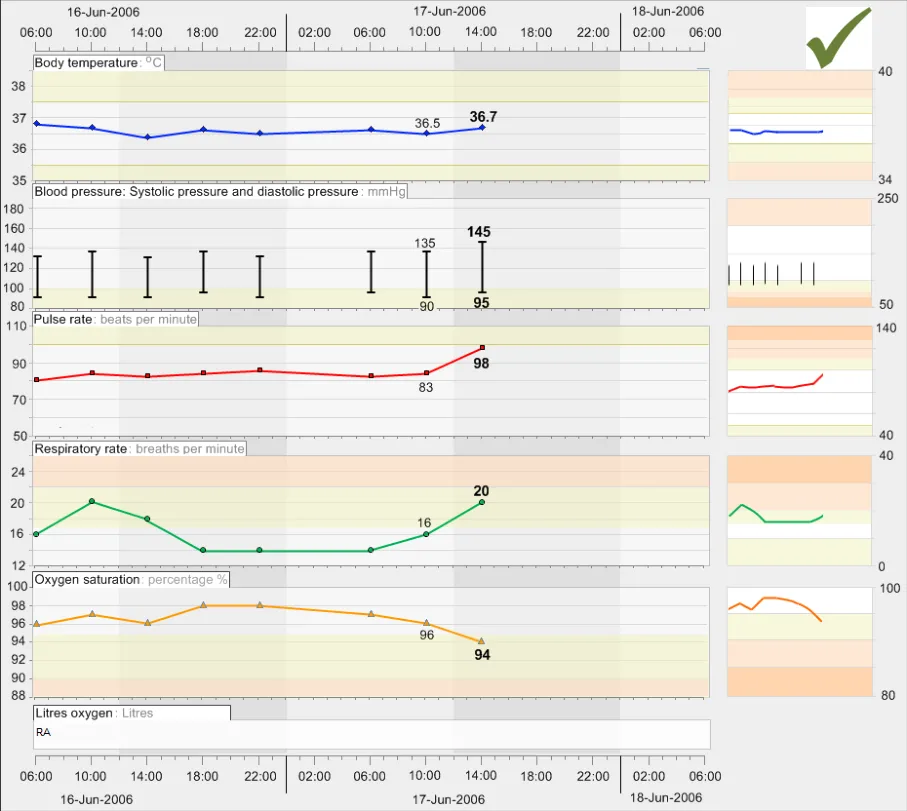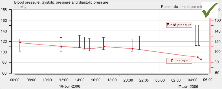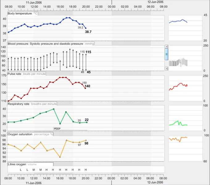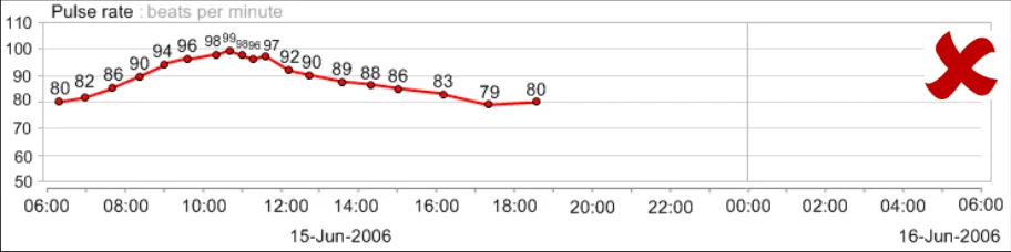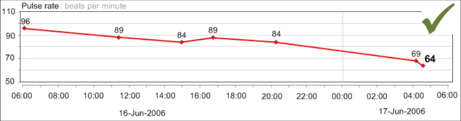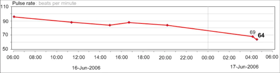 On the second reading the nurse finds the blood pressure is increasing with an increased pulse rate and informs the doctor who then reviews the last day’s observations with the current ones.