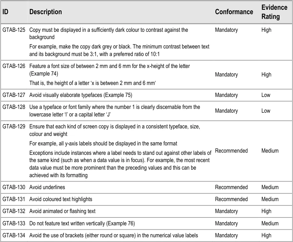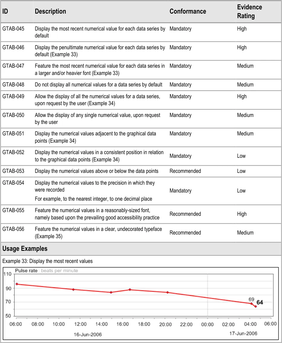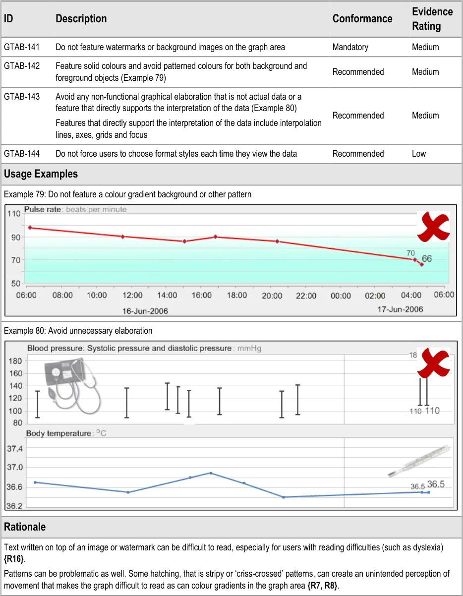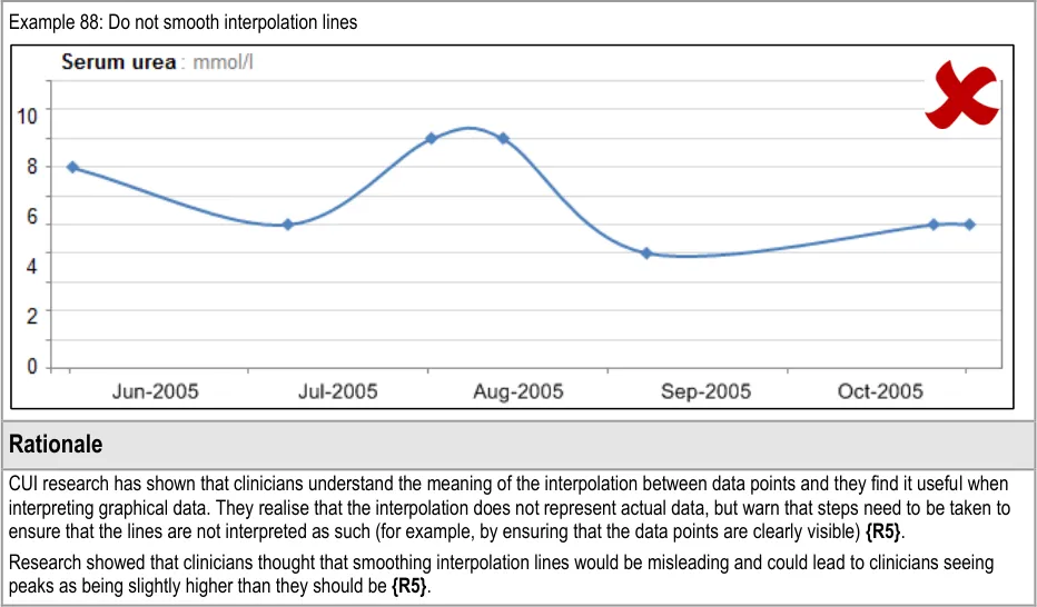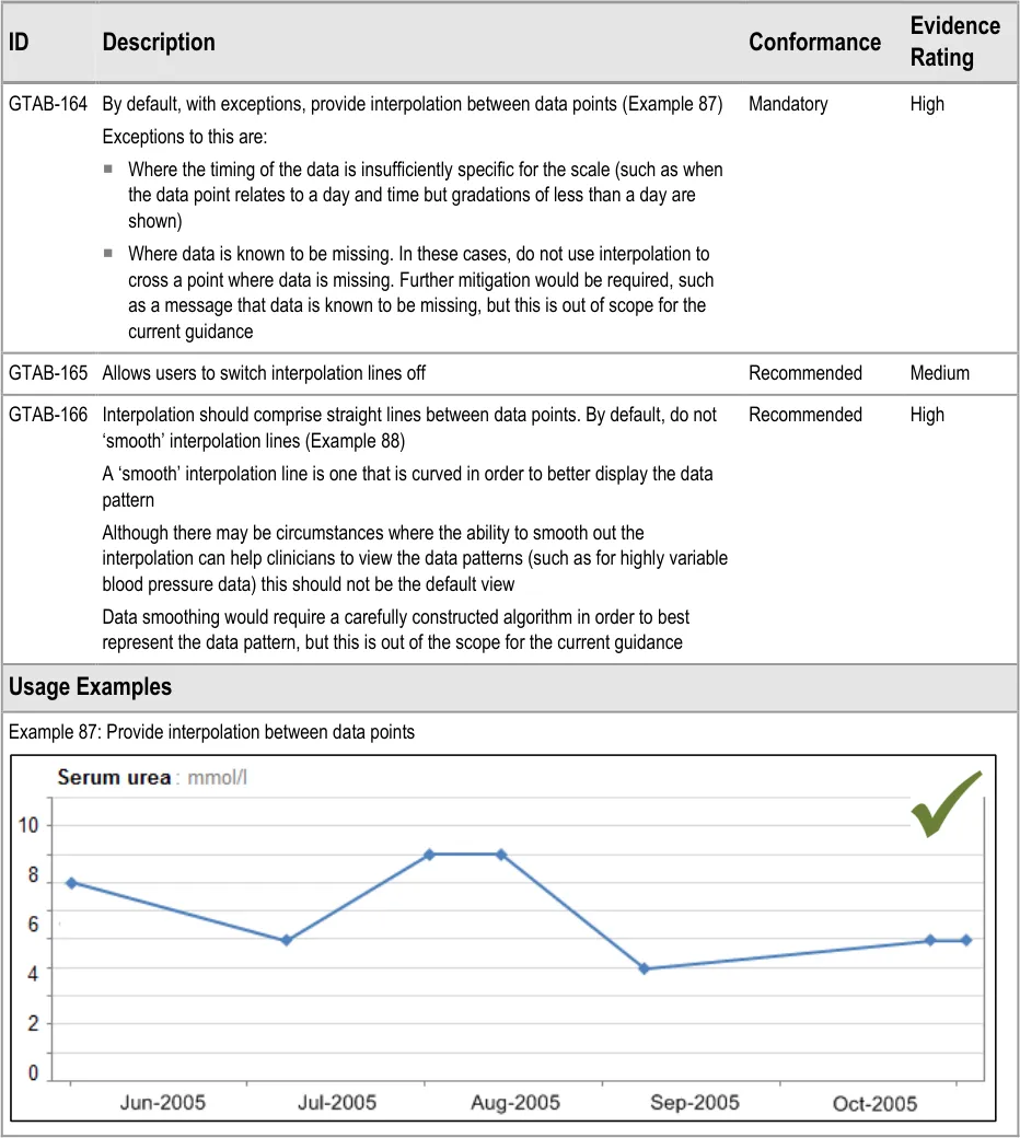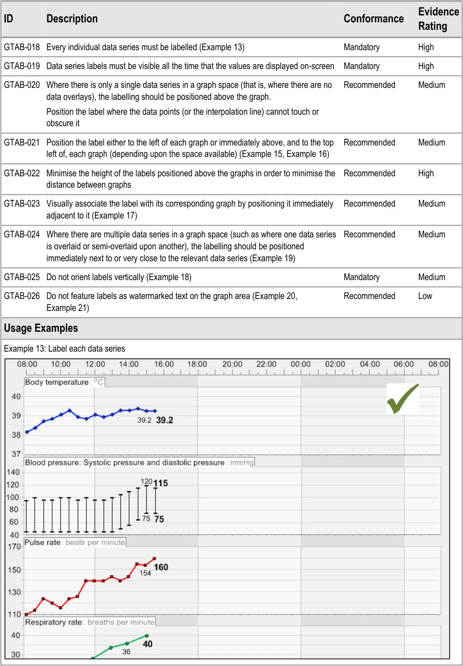 This guidance draws upon User Interface (UI) current best practice and upon research into the use of graphs and tables in clinical settings.