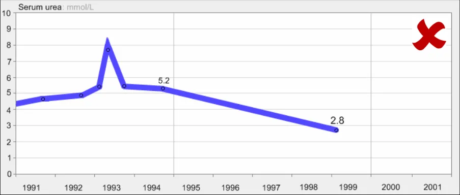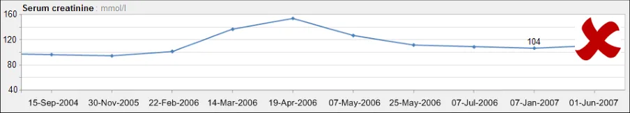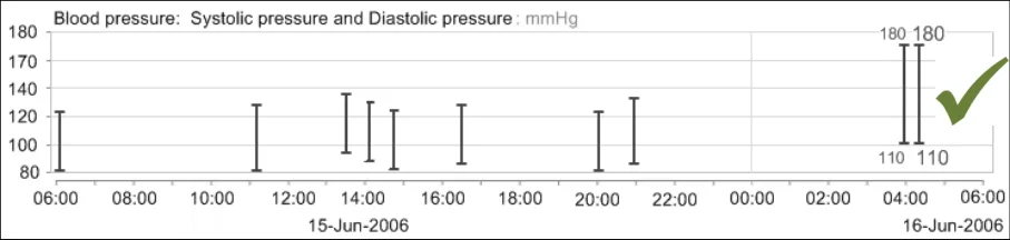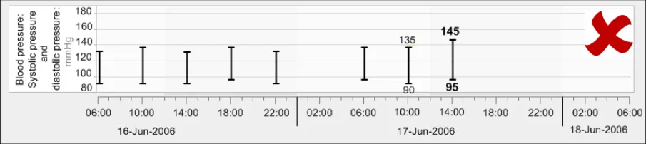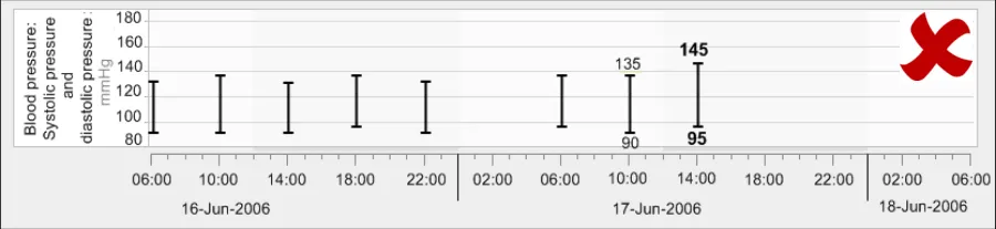 Doctor fails to recognise where the patient’s current blood pressure readings are in relation to the