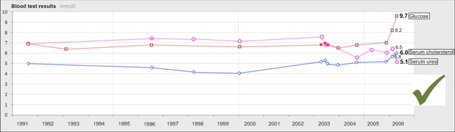 Also, in order that patients can comply with the care intervention, such as changing their lifestyle or taking medication, it is crucial that they can understand their condition, their likely prognosis and the physiological targets they must achieve in order to get better. Health psychology research has shown that patients’ understanding of their condition and likely outcomes are often subject to bias. Whereas people often find it hard to see trends and deficits in numerical data, graphical representations effectively communicate the pattern and direction of physiological signs, along with the changes that patients’ must effect to reach their targets. With this understanding, patients’ get feedback on their behaviour in order to better regulate it.