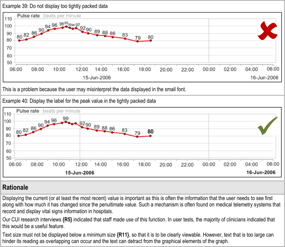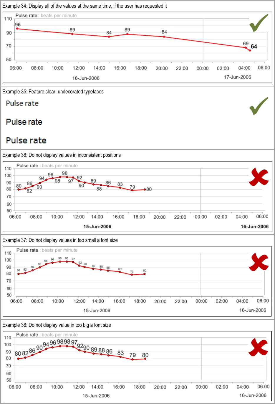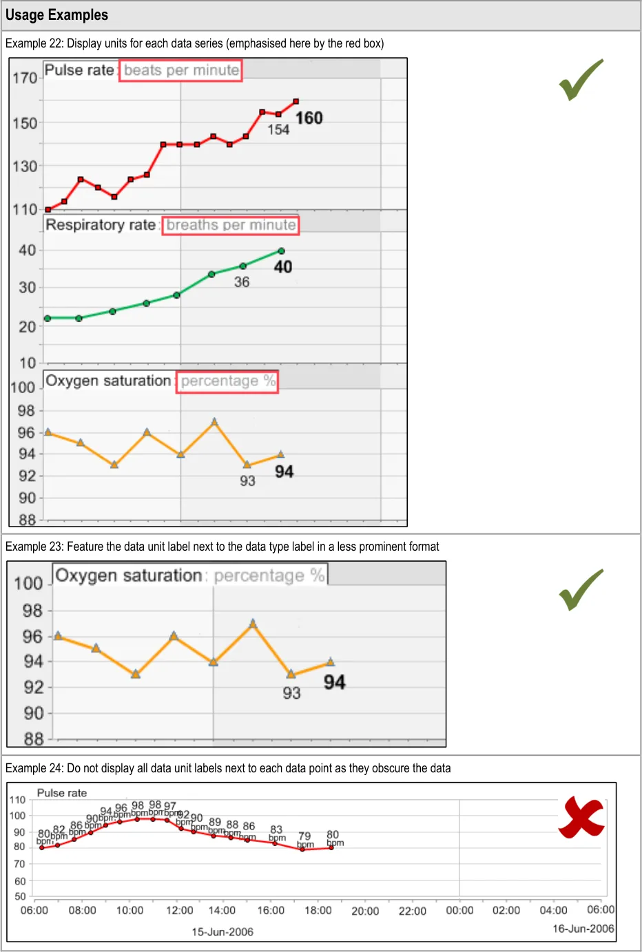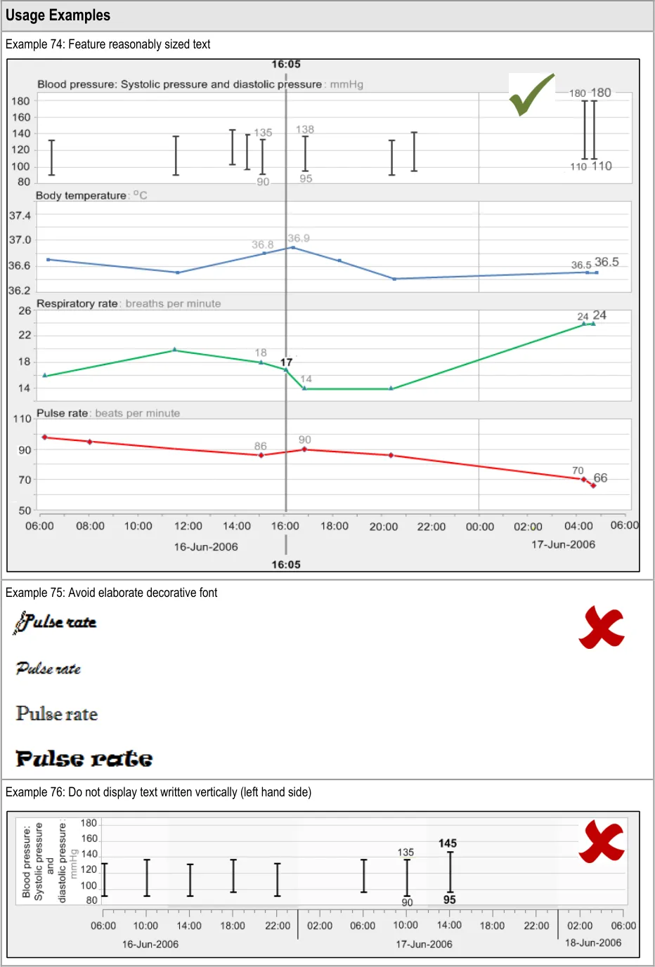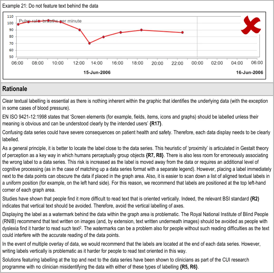 This guidance is for use by Independent Software Vendors to ensure that good design principles support clinicians’ interpretation of numerical data, reveal critical patterns and assist users in accessing specific data values.