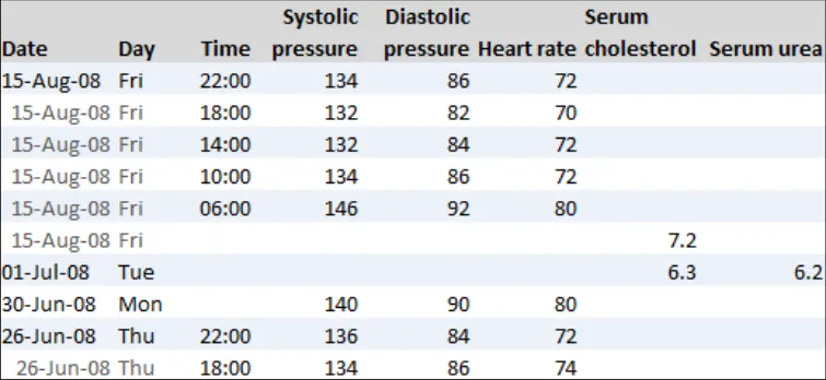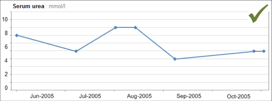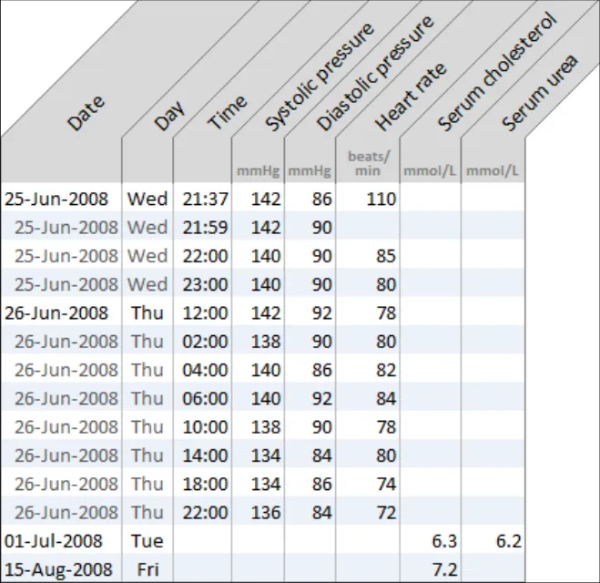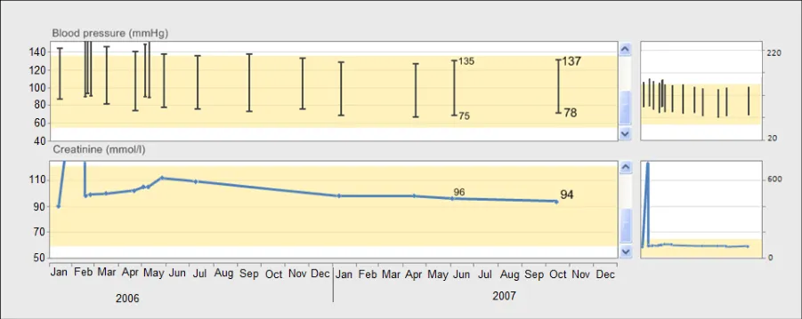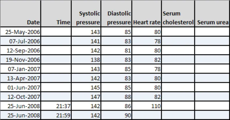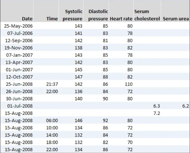 A GP is seeing a patient who is being treated for hypertension. The GP checks the patient’s blood pressure and looks at their readings, which have been taken approximately every three months over the past three years.