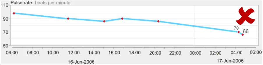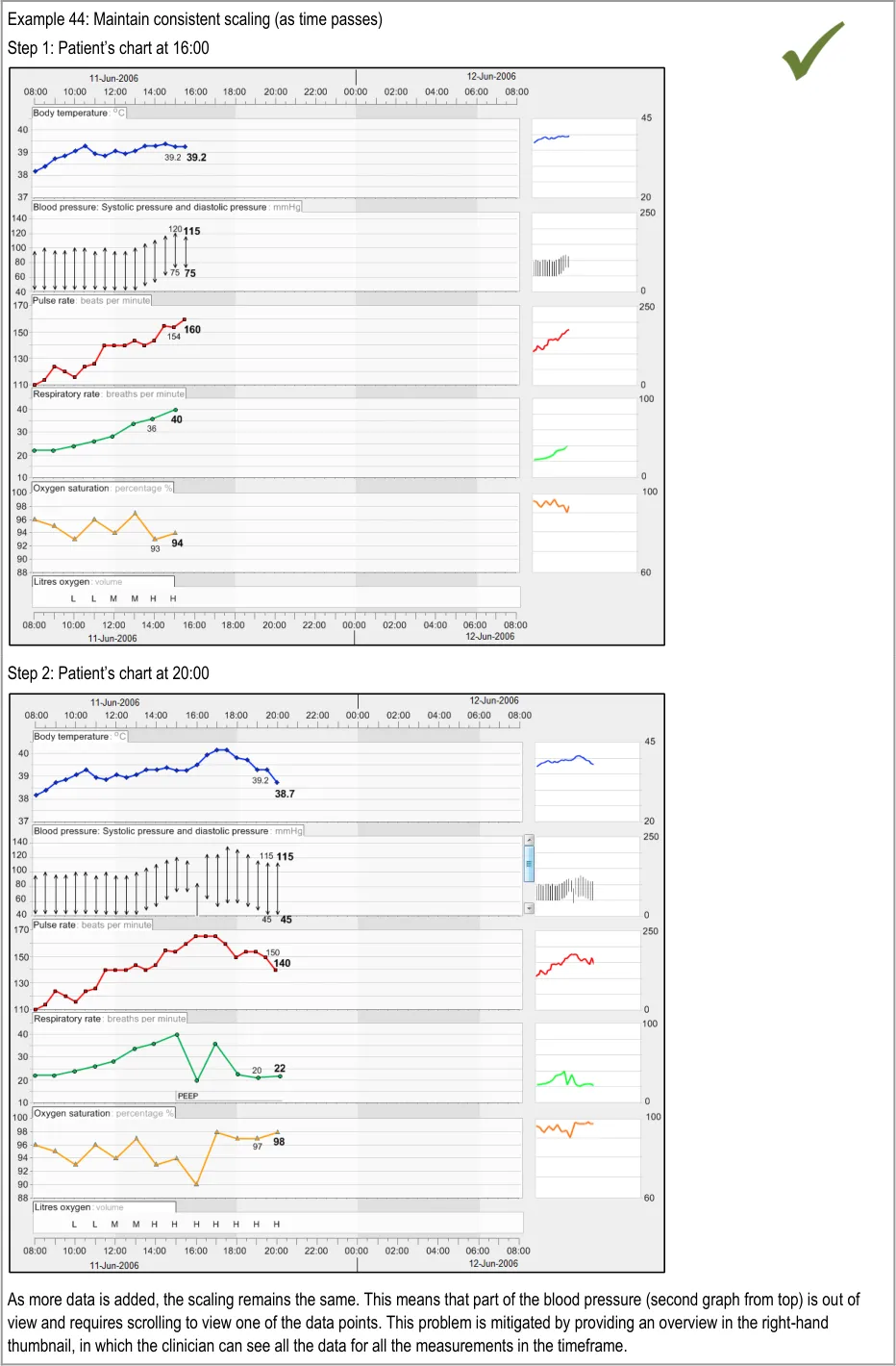 In a clinical context, this may mean that important patterns could be missed or are detected too late. Although, in acute care, early warning scores are effective for detecting problems, in other clinical contexts, and for subtle data patterns, measurements may need to be displayed graphically for changes to be perceived.