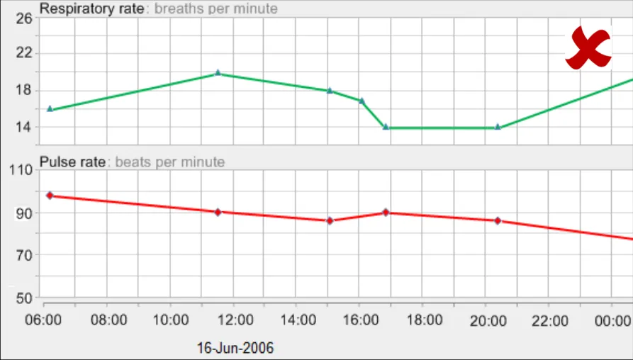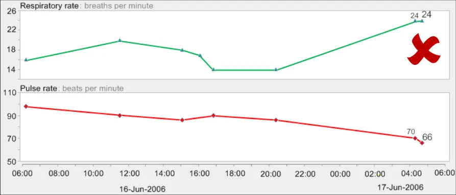 Nurse fails to see the rise in blood pressure and drop in oxygen saturations as significant: