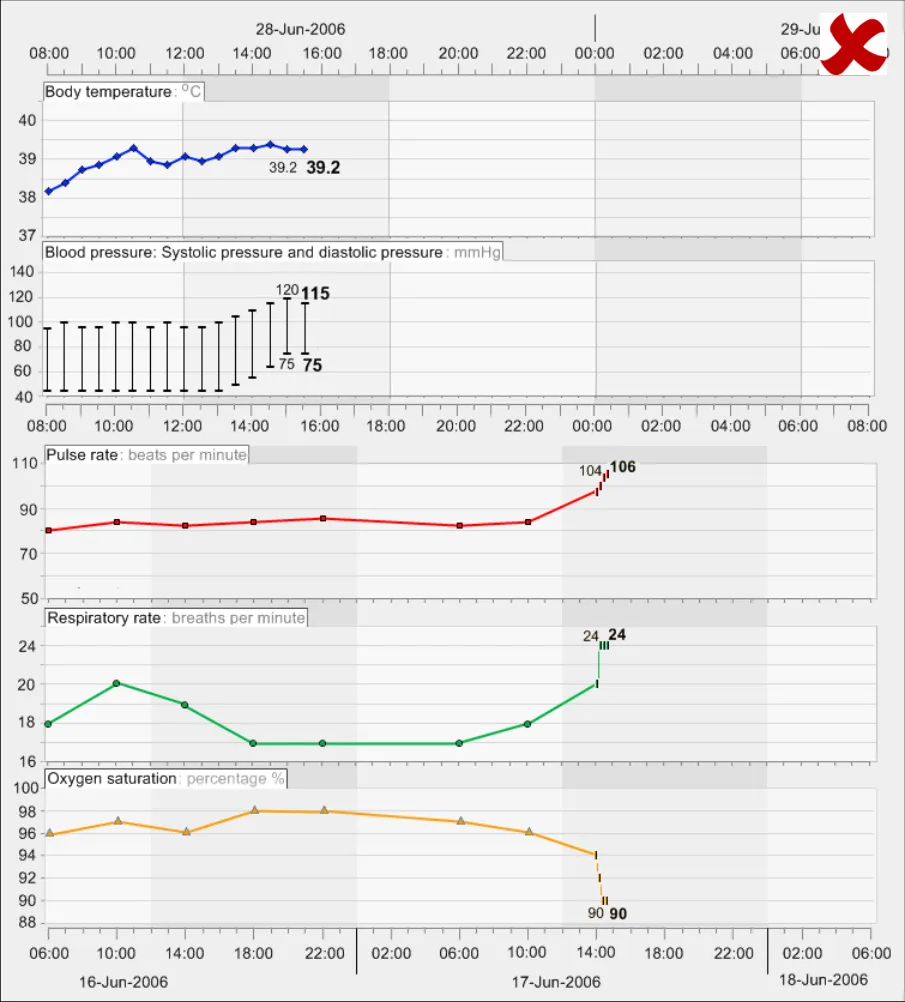 - Not seeing a drop in blood pressure in the context of the oxygen, pulse and temperature