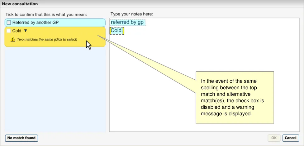 Please note that this guidance applies only to the noting input and matching process. Beyond the point at which the notes are saved to record, this guidance is no longer necessarily applicable.