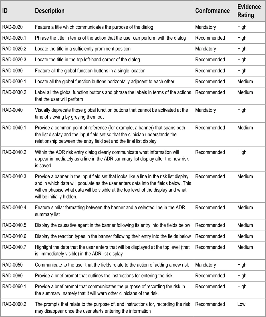 This guidance is written with the assumption that the display of a list of ADR risks would be featured in clinical applications in addition to automatic warning alerts based upon Decision Support Systems (DSS). Accordingly, the guidance scope does not cover such DSS alerts and the reader should not assume that the designs in this document would remove the need for such alerts. However, it is the case that DSSs would be dependent upon the clear and error-free recording of ADR risks by clinicians, which is addressed by the current guidance.