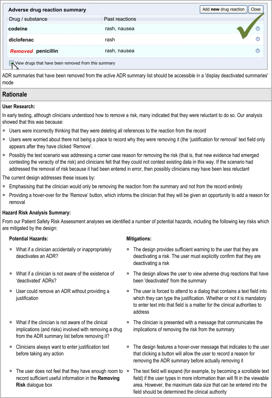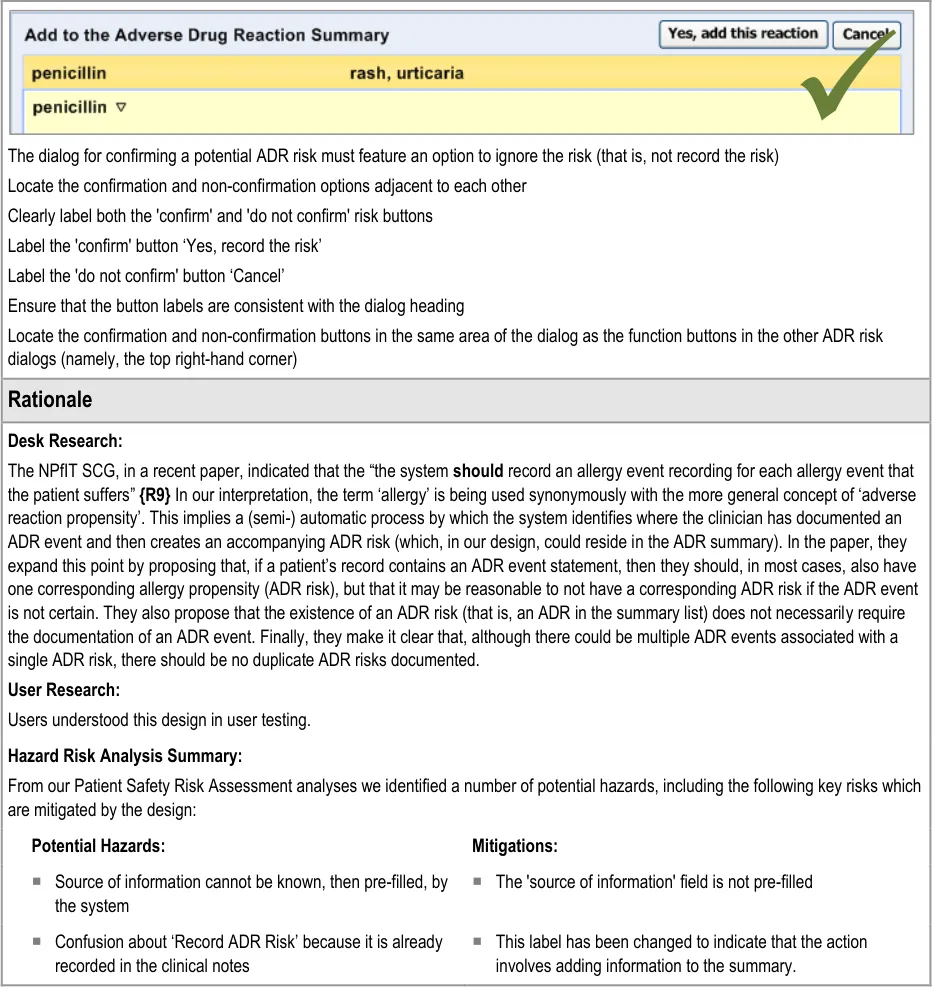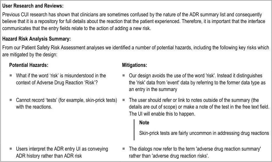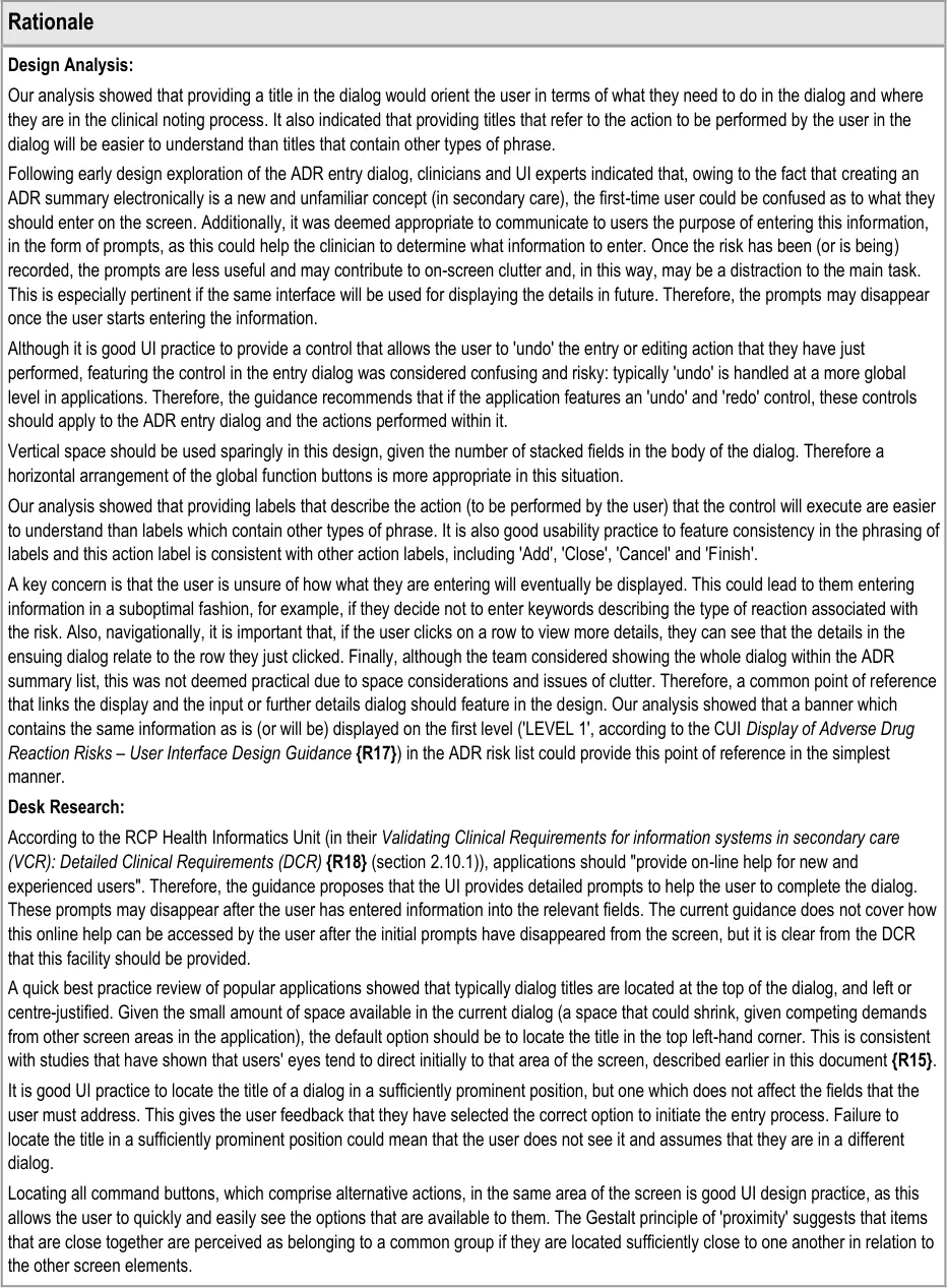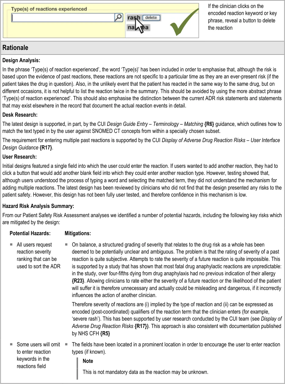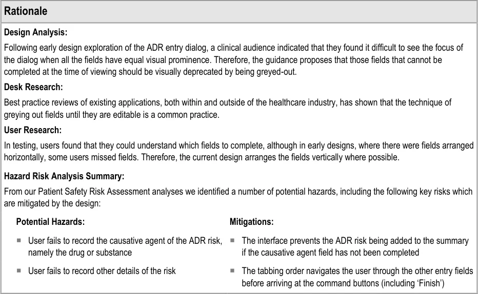 Document Title Recording Adverse Drug Reaction Risks User Interface Design Guidance
