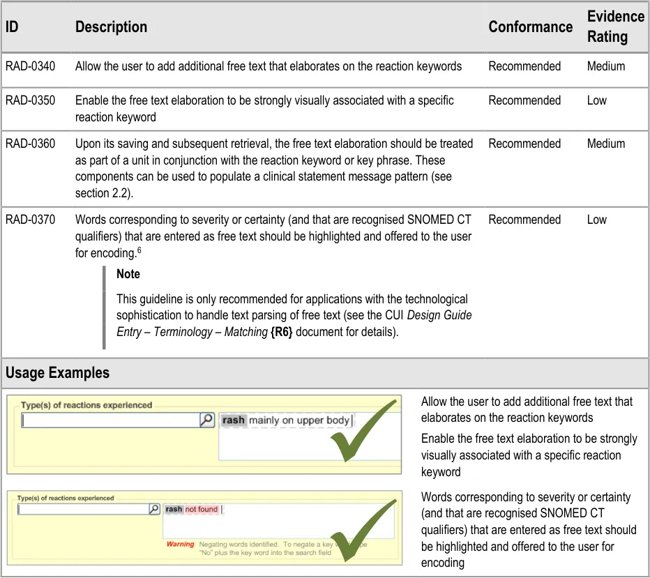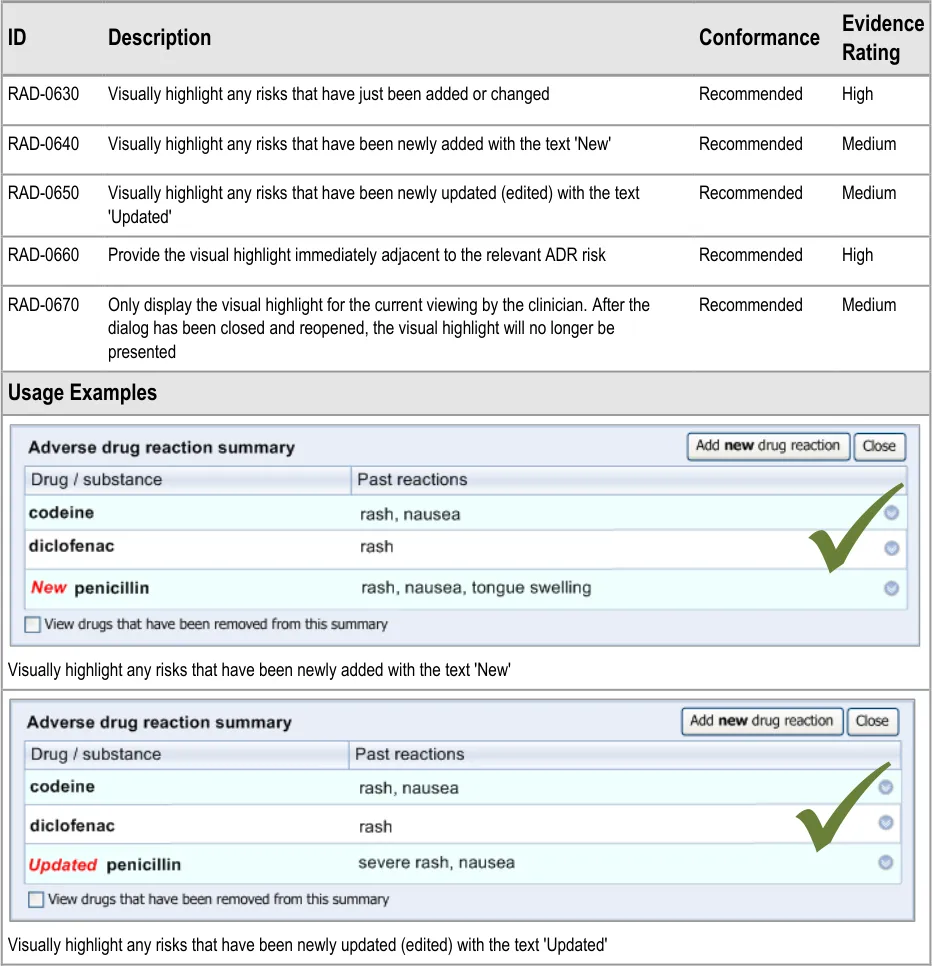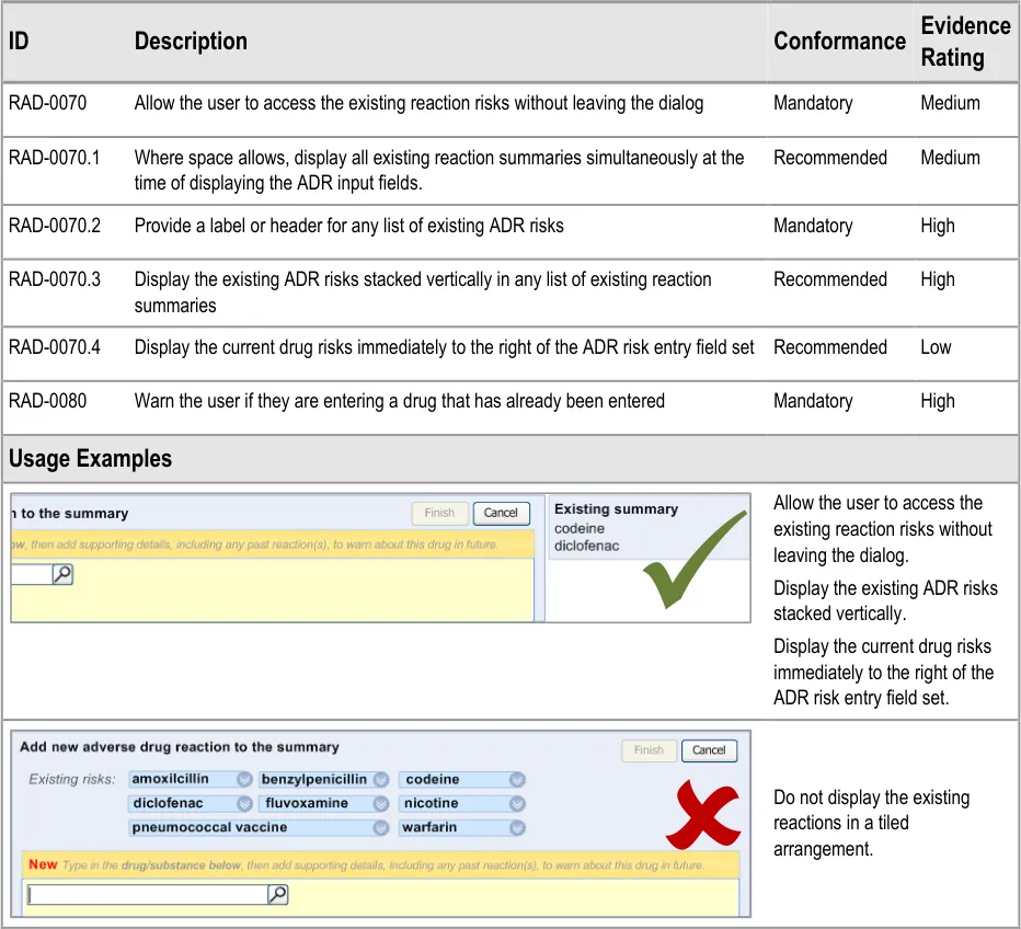 Therefore, this guidance distinguishes between the risk of a future reaction and the event of past reaction, but acknowledges that these two sets of data are intimately linked and that this should be reflected in the user interface.