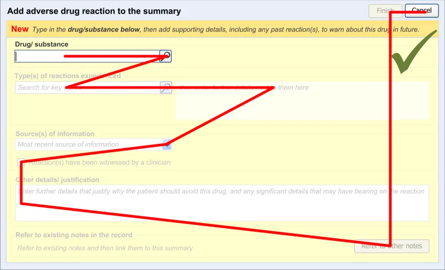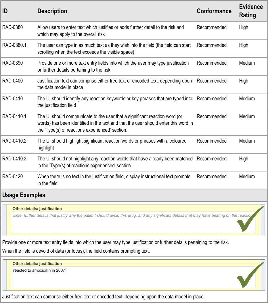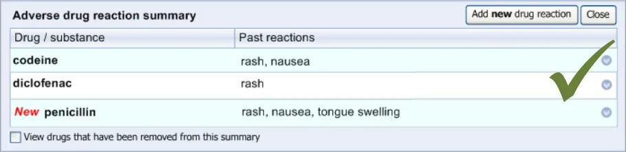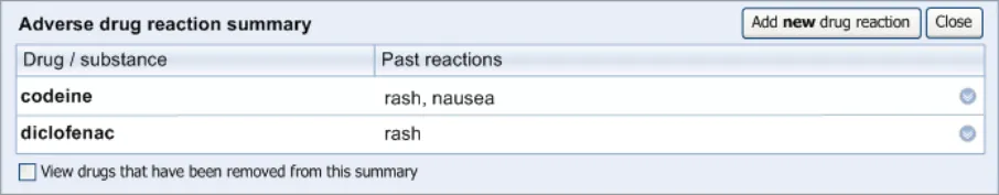 The goal of the current guidance is to ensure that clinicians can easily and effectively record ADR risks in order that the patient is not given the offending drug again (unless there are extenuating circumstances). This is not about recording the expected side effects of drugs; instead it is about identifying past idiosyncratic reactions in order to prevent them in the future.