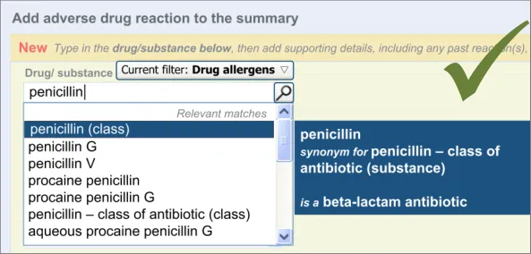 This guidance will take the approach that an adverse drug reaction can be expressed in terms of an actual reaction event or in terms of a future risk to the patient. As will be shown later in the document, this is an important distinction, given that a patient can experience a reaction (event) without the clinician believing that the drug represents a serious future risk; or, conversely, the clinician may wish to record that the patient is at risk of adversely reacting to a given medication, even if the details of any past reaction are not known. For example, the patient may tell the clinician that they are allergic to penicillin, but are not able to recall any specific reaction event to justify this risk. The clinician may therefore wish to record this as a risk and not an event.