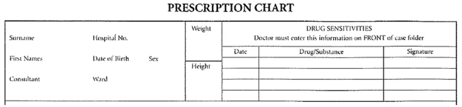 A good example to demonstrate the need for a summary of ADR risks is the area on drug charts reserved for recording drugs which should be avoided, shown as ‘Drug Sensitivities’ in Figure 2: