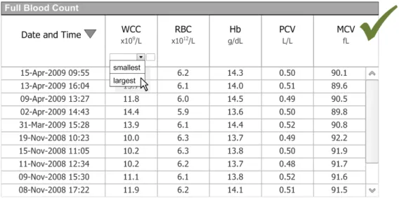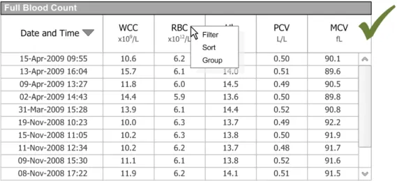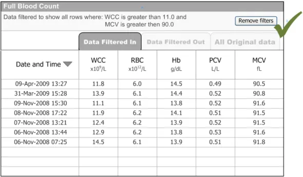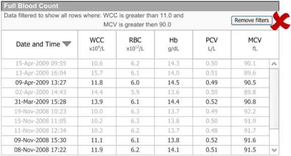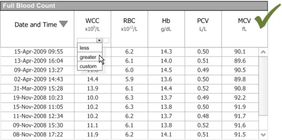 Whatever the care setting, clinical systems must provide functionality, such as filtering, sorting and grouping, to aid in the analysis and interpretation of information. It is acknowledged that at times there is a requirement to present data that is already filtered and presented in an optimal fashion so that clinicians are not required to perform further data manipulation. Where filtering, sorting and grouping are required, there is a need to support this functionality in a consistent manner across all clinical applications. The availability of such functionality in common non-clinical applications, such as email readers and spreadsheets, means that many standards are already in place and increasingly used by clinicians either at home or while performing administrative tasks. To mitigate