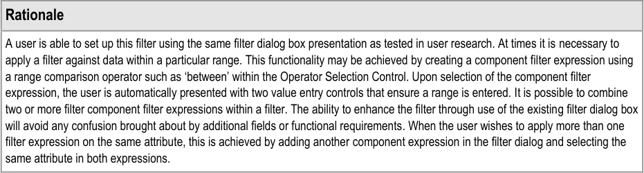 The application of filtering, sorting and grouping covers a very broad range of functionality for a given data set. The functionality for these complex areas is set out in section 1.1. This design guidance covers only a limited area, as defined by the scope in section 1.3.