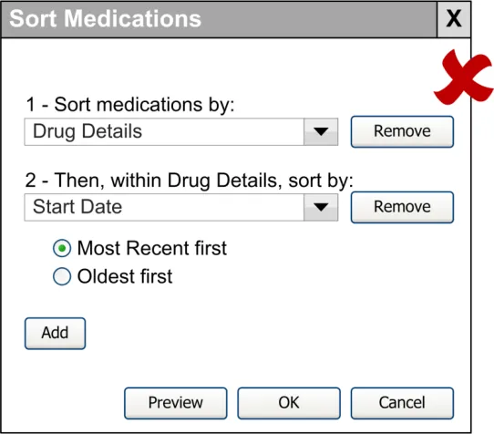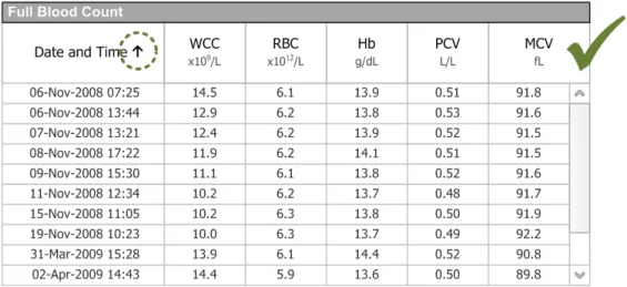 All the HCP (6/13) expected data relevant to their current analysis to already be displayed in the list. Two HCP explicitly stated that they would not try to sort by a variable that was not already showing in the list. The majority (10/13) of respondents wanted the variable that is used to sort the list to be displayed in a column within the list. In cases where the sort-order selected was based on data not currently shown in the list respondents (9/13) considered it acceptable to add the column and shift the view of the table to show the just-select sort-order.