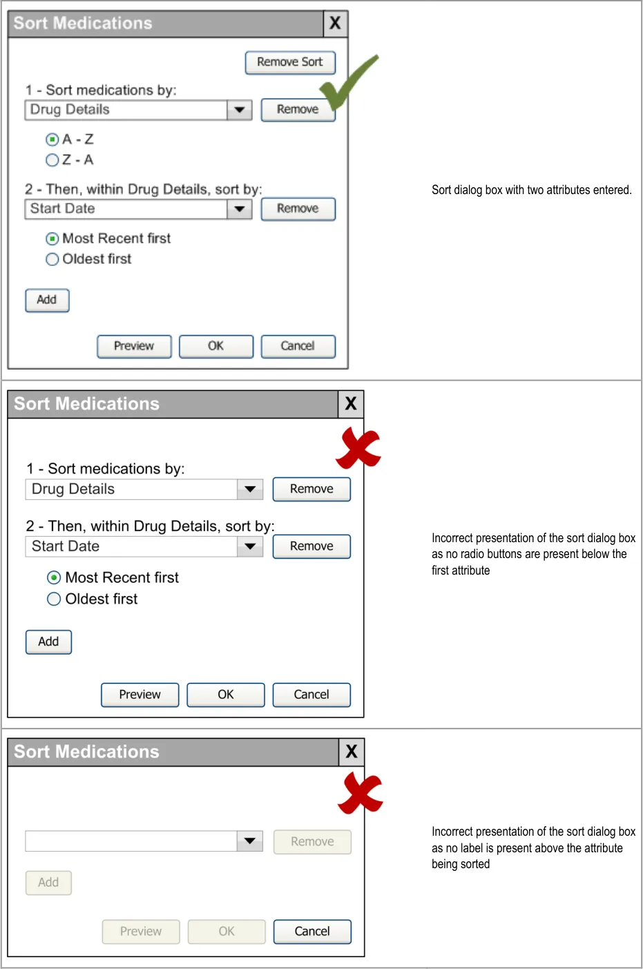 Respondents (7/13) preferred design options that indicated the sort-order with a number. Figure 13 was the most popular design (4/13). Several (3/13) respondents indicated that the sort order would be obvious from the table contents and selected Figure 1.