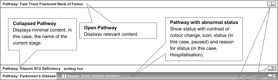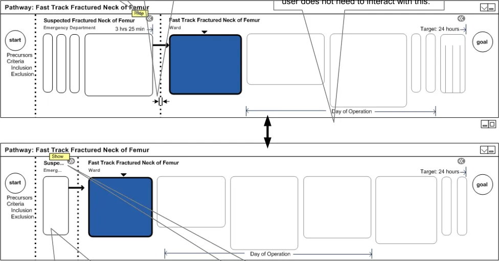 Enchained sub-pathways that the patient is following are shown in Figure 16 as sequential steps, and are also shown as joined on the same ‘parent pathway’.