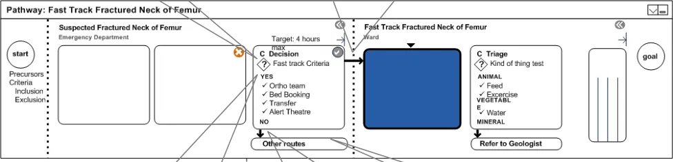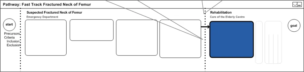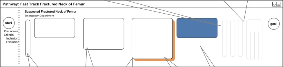 The patient passes the fast track criteria in the Emergency Department and is admitted to the care of the Orthopaedic team in a ward, as illustrated in Figure 15: Click