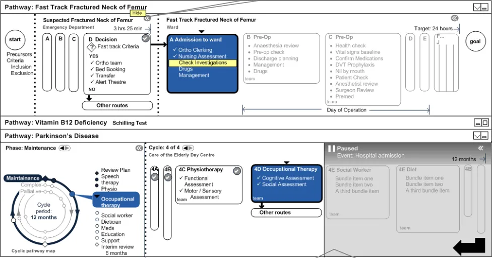 The key aspect of this exploration was revealing the need for simplicity in the manifestation of care pathways. This element was carried forward into the visualisations presented later.
