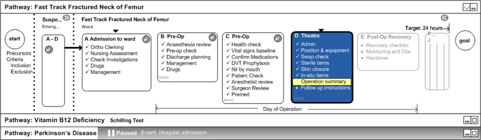 It is clear that viewing multiple pathways in parallel is only one aspect to consider. Essentially, some pathways run in parallel, and some are enchained, such as rehabilitation following surgery.