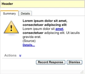 Alerts inform the user of a situation that requires attention. There are two alert levels: