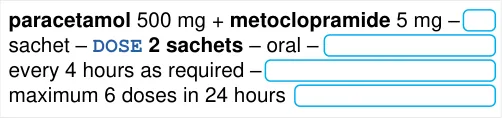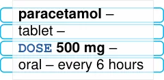 paracetamol – tabletDOSE 500 mg – oral –every 6 hours text wrap | paracetamol – tabletDOSE 500 mg – oral –every 6 hours text wrap |