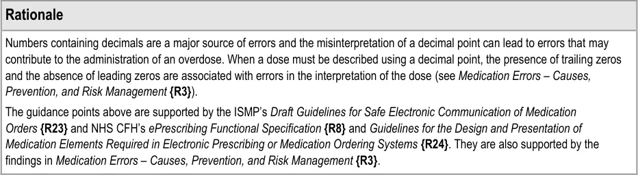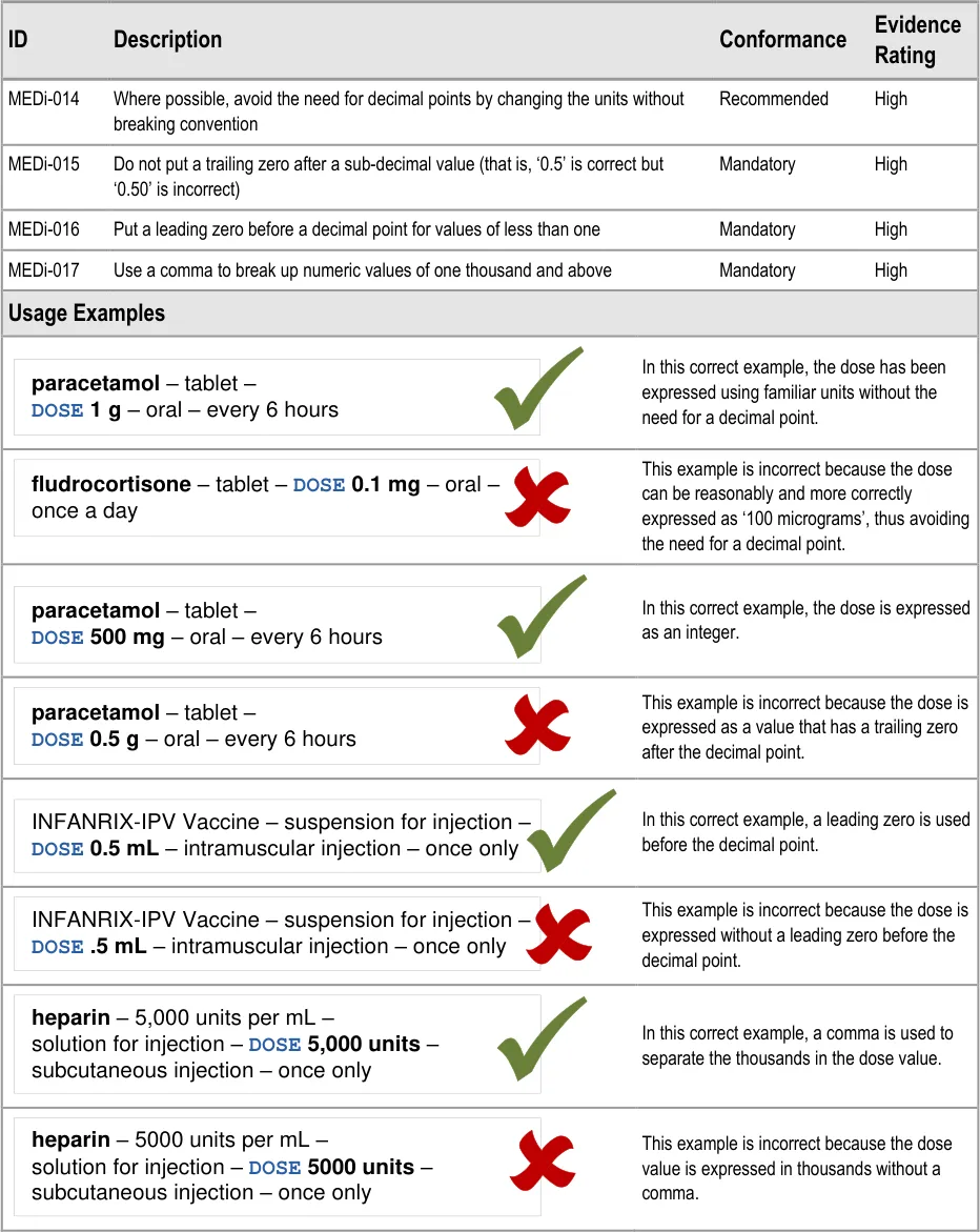 MEDi-042 3.3.11 Do not put a trailing zero after a sub-decimal value when displaying a dose amount (that is, ‘0.5’ is correct but ‘0.50’ is incorrect)