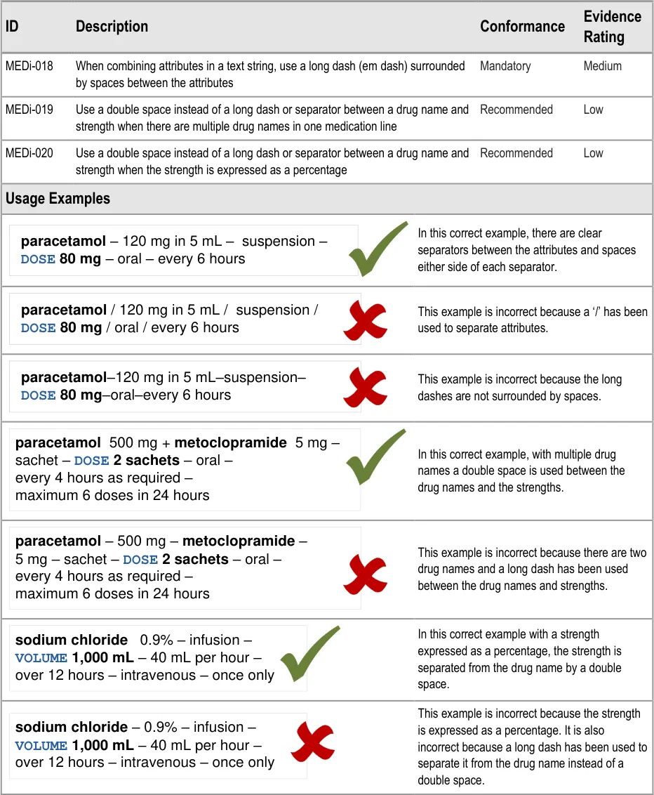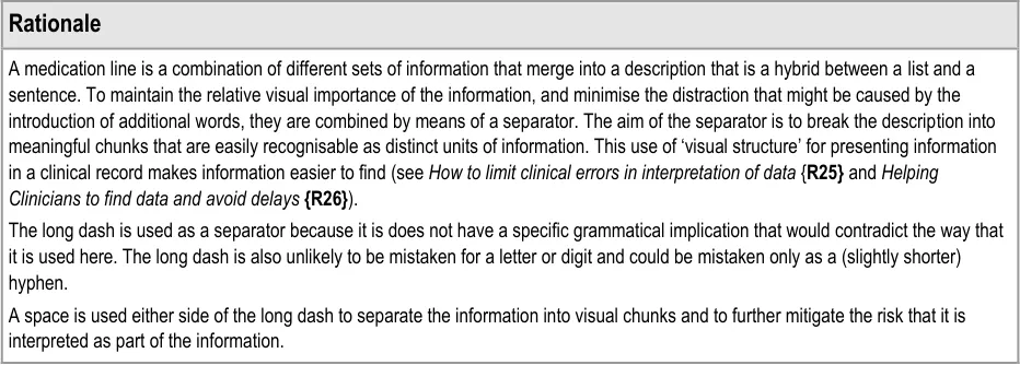 This document replaces the previously published guidance Medications Management – Medication Line {R1} . It has been extended to provide formatting and layout rules that add structure and consistency to the way that medications are displayed in a user interface.