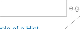 The input control may provide a hint, prompt or tooltip. Hints are instructional text placed outside but adjacent to the text input box. Prompts are commonly known as watermarks and comprise instructional text placed within the text input box. Tooltips are instructional text that appear when the mouse pointer is placed over the text input box.