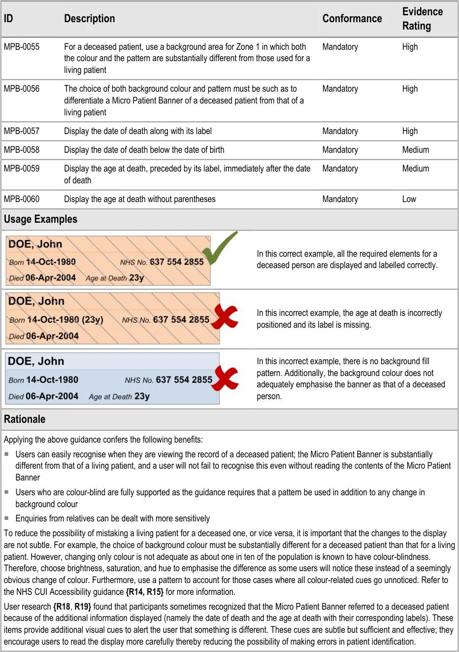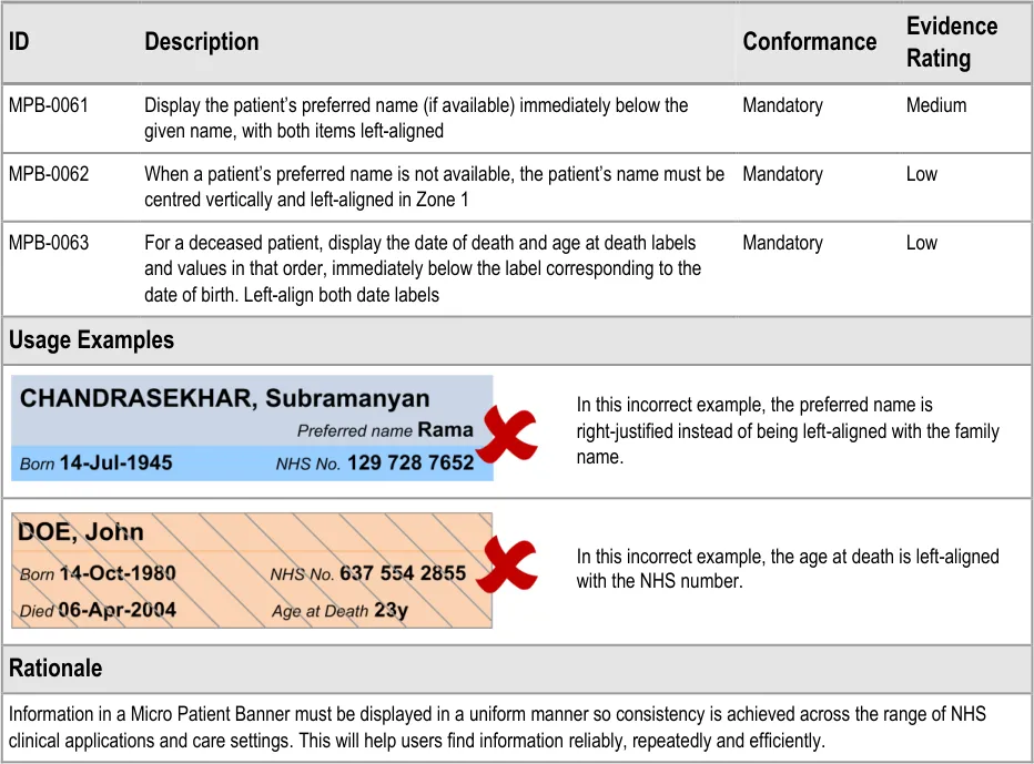 R1. NHS CUI Design Guide Workstream – Design Guide Entry – Patient Banner 4.0.0.0