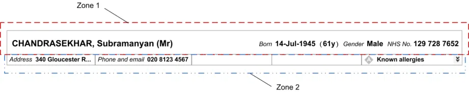 A patient banner is an area within a clinical user interface (UI) that provides key information in a consistent and unambiguous manner, allowing patients to be accurately identified and matched with their associated records.
