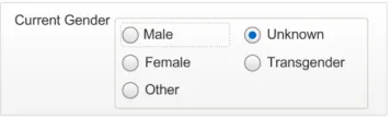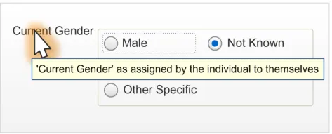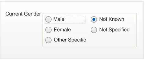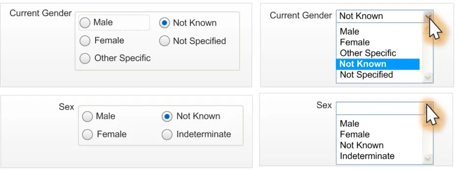 Figure 2: Example Input Designs for Current Gender and Sex Statuses
