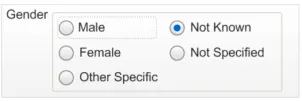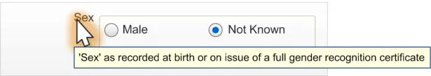 Figure 1: Example of the Format for Displaying Gender and Sex in NHS Clinical Applications