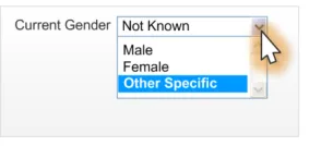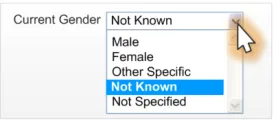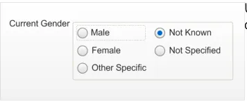 - Specification of an input and display control for the Sex and/or Current Gender statuses in a