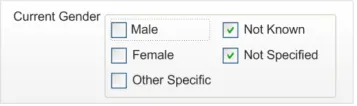 The Current Gender input controls are used to record the gender, according to how a patient currently describes themselves, whereas the Sex input controls records their phenotypic sex (see section 2.4 for more information).