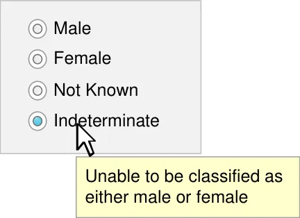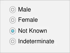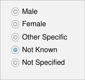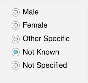 - Ensure that Sex controls have no value selected by default and no method of returning to this ‘null’ state